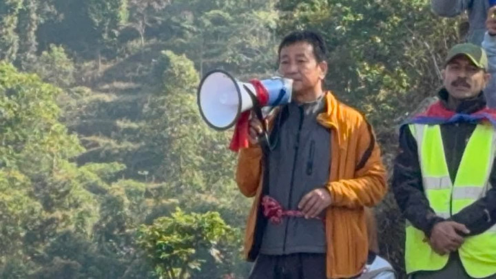 मेयर साम्पाङ भानुचोकमा थोत्रे गाग्री बोकेर आन्दोलनमा उत्रिए